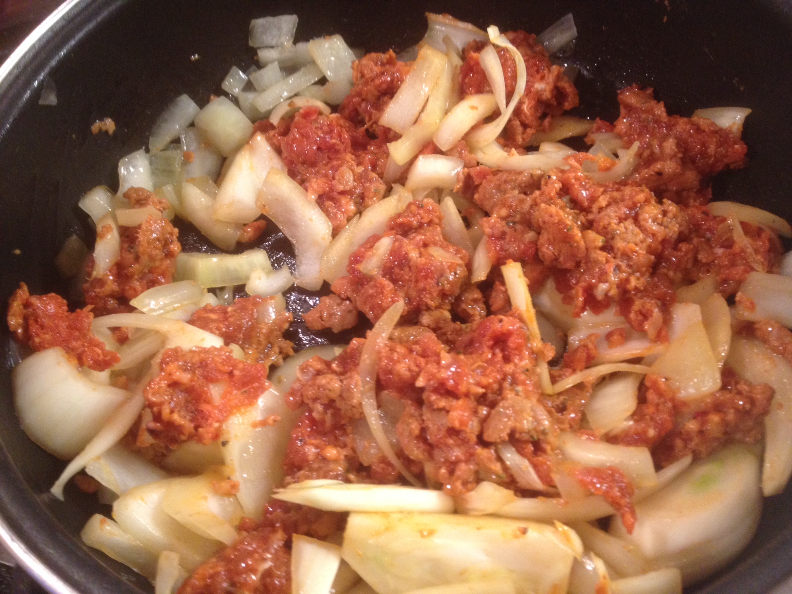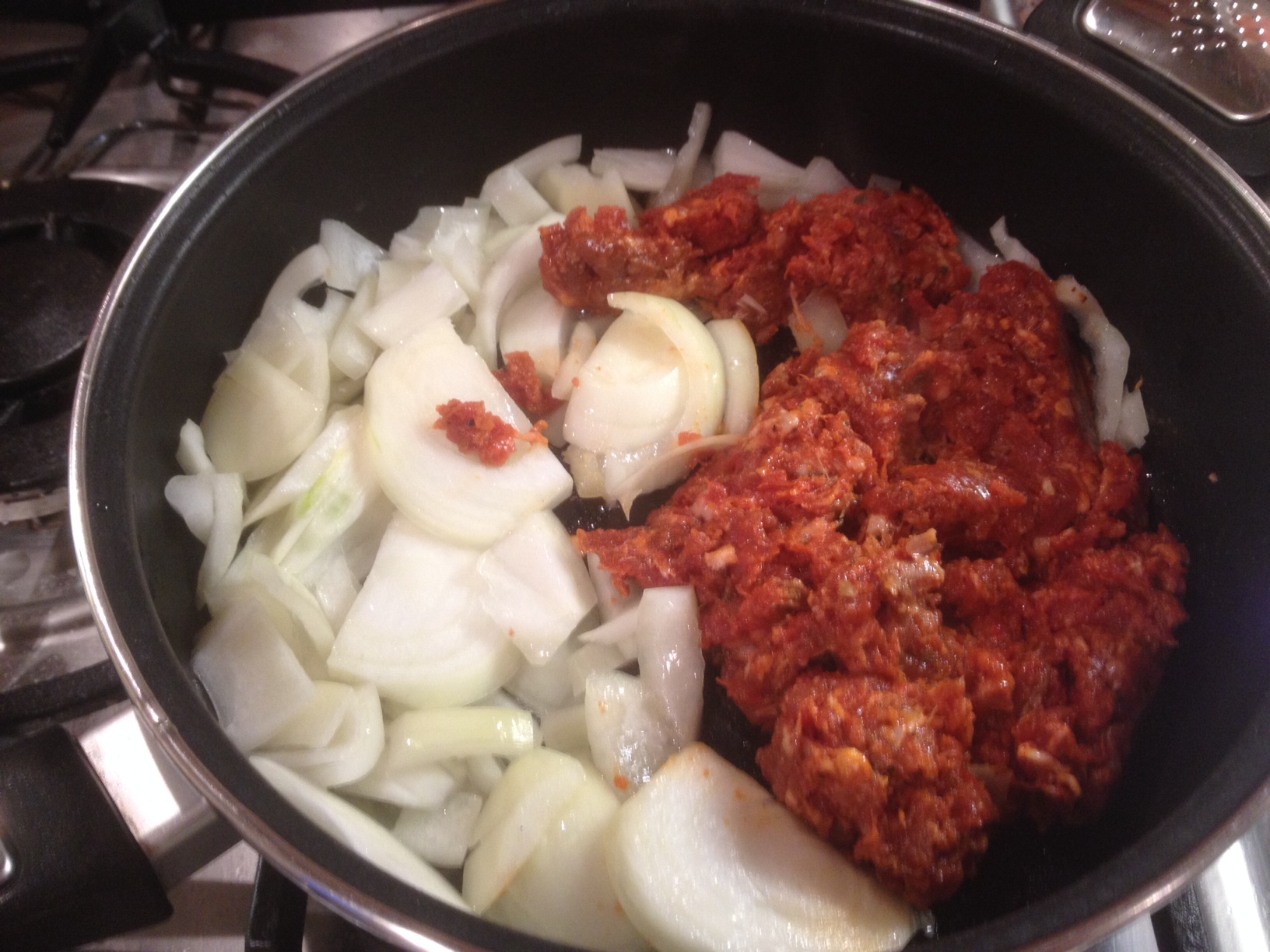 I just get the Sausage and Onion frying gently up in a pan until the oil from the sausage meats starts to release and onion start to soften.