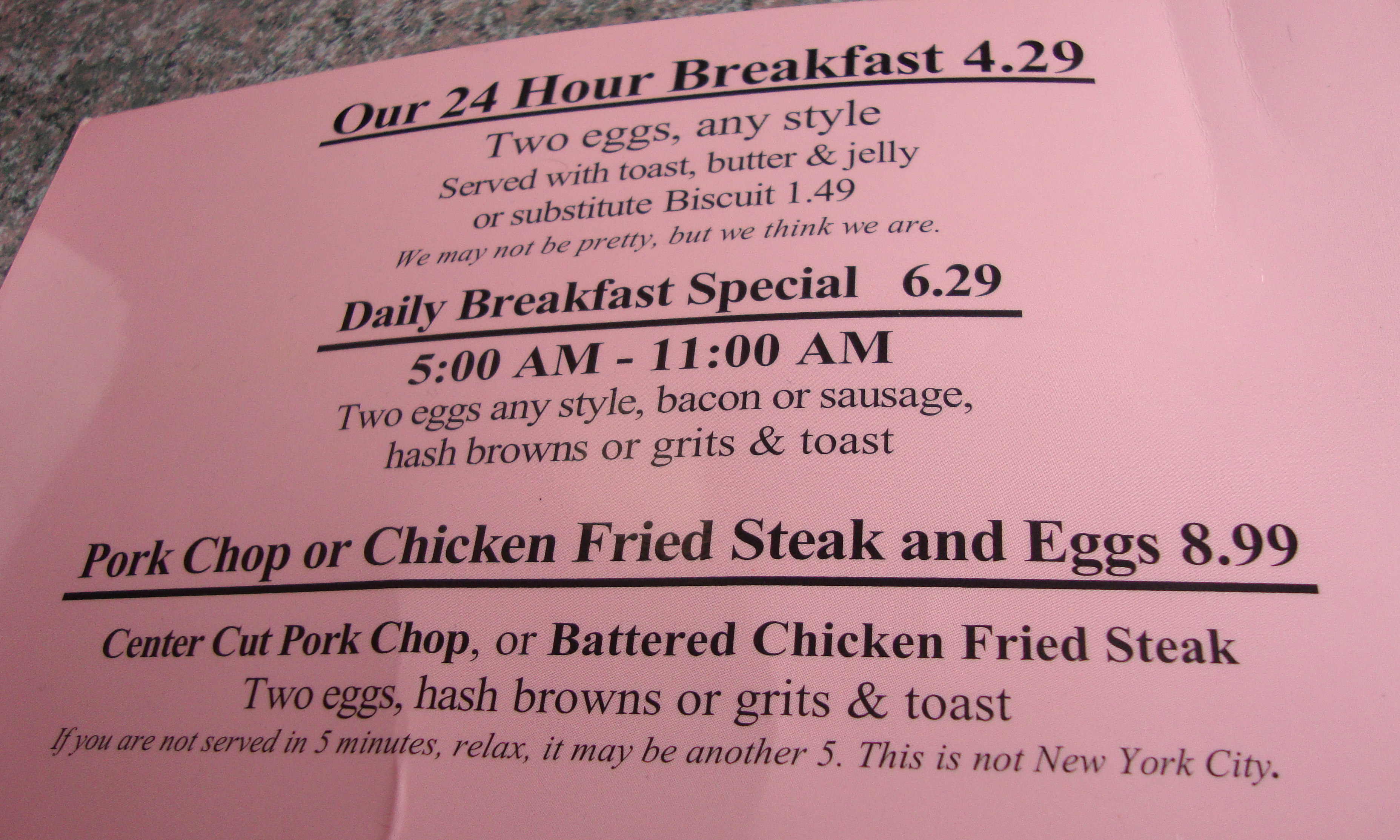 When it came down to it, I really was not in the food frame of mind to play it big or clever. I just needed some sort of egg situation and so I found myself ordering the ‘Two Eggs any Style’ with toast for $4.29 the item that they call their 24 hour breakfast. I added a side of sausage to it, just for something a little extra. It may not look like it was much, but it was just what my body needed, a simple plate of scrambled egg on toast.