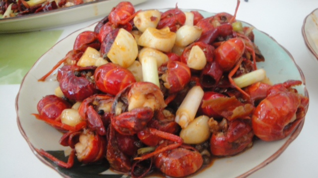 The second dish that I really wanted to try again was one that I did not know the name of. Luckily there was a poster on the wall of red shelled crayfish tails that I was able to point at. I asked Wesley what this dish was called in Chinese and the translation in English and I was surprised at the translation being ‘prawns’ as I think that this is made with crayfish and crayfish tails. It is a really delicious juicy and messy dish to eat. You end up sucking the meat out of each piece and it is really spicy, you will end up with juice, and spicy juice at that, all over your face. You just have to accept that and then it is fine. I remembered the crayfish being bigger in Wuhan, and when we talked about it so did Wesley, To be honest I think that our imaginations just have ‘bigged the dish up’. I had many happy moments with a bowl of these in the C.A.S canteen sucking the meat out and getting messy in Wuhan, and this brought back many happy memories.