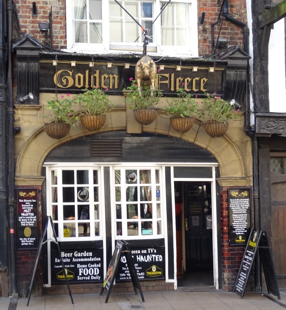 The Golden Fleece pub is located at 16 Pavement, York, YO1 9UP. It is pretty near the start of the Shambles and just around the corner from the Blue Bell on Fossgate. If it helps it is just across the road from the M&S store đŸ™‚