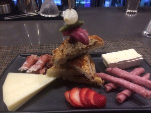 The Charcuterie Plate was described as ‘Gourmet Cured Meats and Assorted Cheeses. It actually turned out to be the Cheese Plate with meat, so you got the Manchego, the Brie, Quince paste, and Fig Jam plus a load of other bits for just $5 more