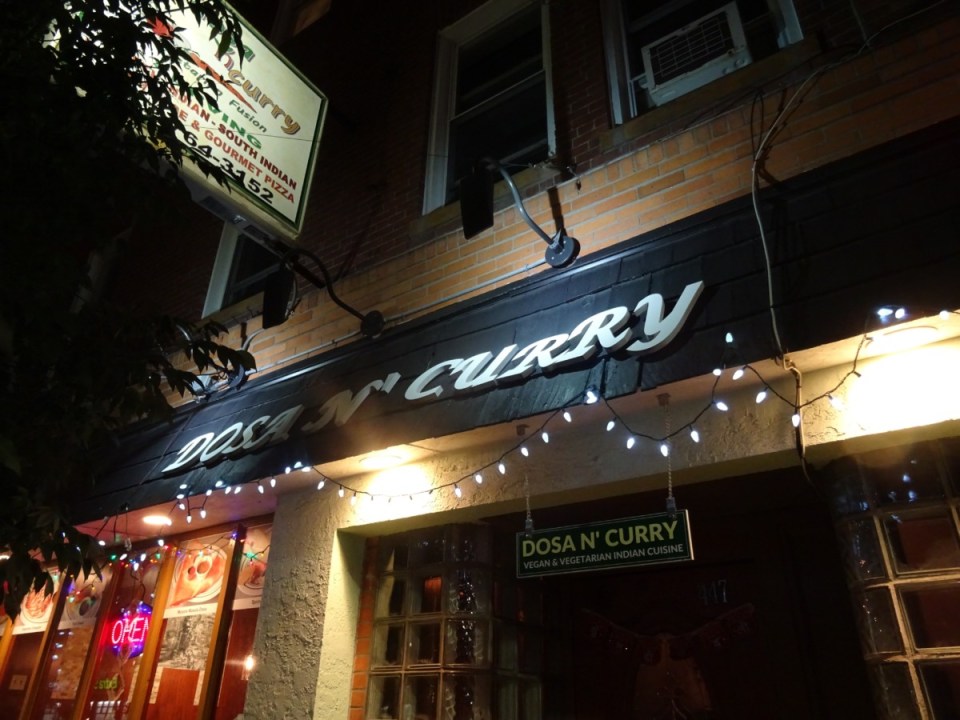 Dosa N’ Curry in Somerville on the outskirts of Boston is a self proclaimed ‘Vegetarian Fusion’ restaurant serving ‘North Indian, South Indian, and Indo-Chinese’ food. They also apparently serve ‘Gourmet Pizza’ but we were not here for that.