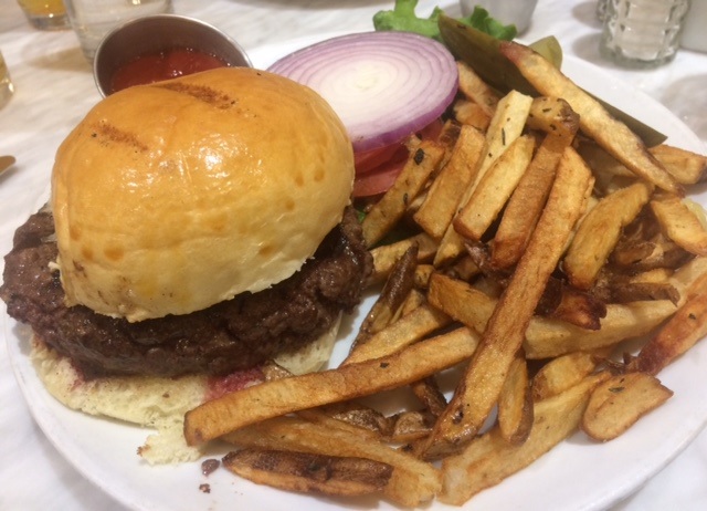 The friedmans burger is a classic all natural angus beef served with herb fries, and pickle on a brioche bun. They provide a stack of lettuce, tomato, and red onion so that you can ‘dress’ your own burger sandwich as you like it.
