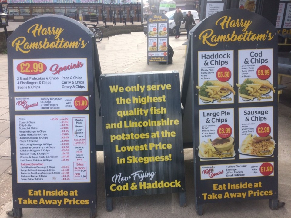 Harry Ramsbottom’s is one of many Fish and Chip shops in Skegness taking up a great location right on the corner by the seafront as you pass the roundabout