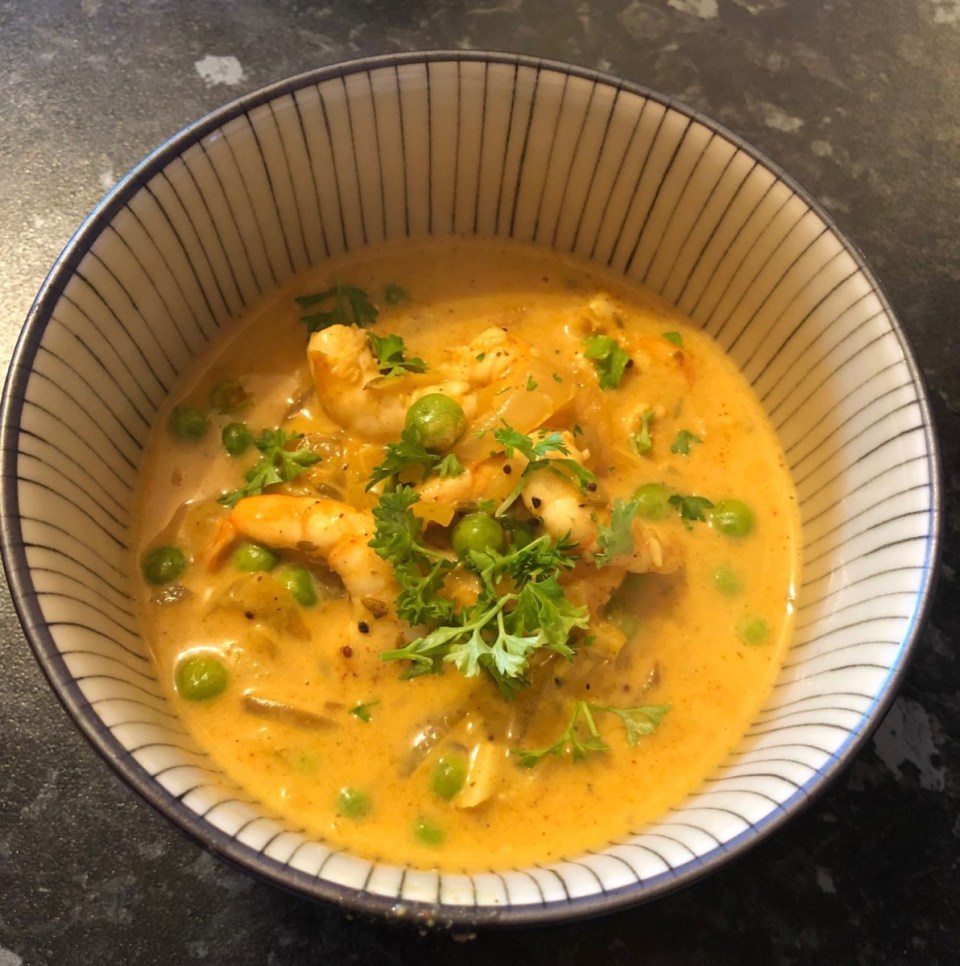 I made this Coconut Prawn Curry last weekend using whatever I had in the cupboard. I had a pack of prawns in the fridge, a tin of coconut milk, and an onion, so I just googled prawn coconut curry and got loads of suggestions.