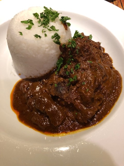 The online menu description suggested that this was ‘An rich and intense (very hot) beef curry originating in Southern India with a highly spiced chilli sauce’