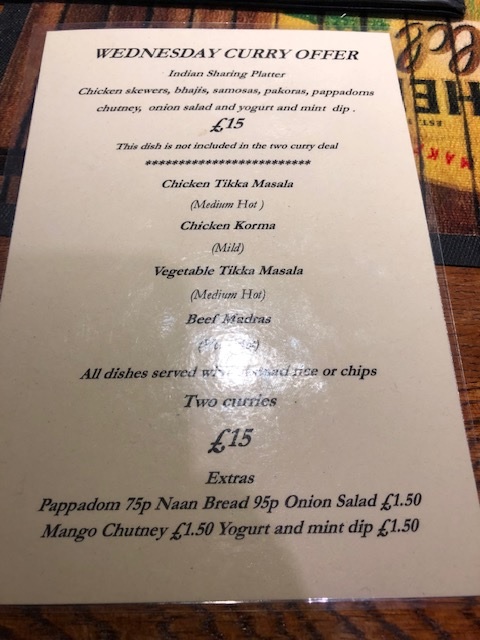 On the first evening when we ate at the Ring o Bells some of the locals in the bar said that we should come in on Curry Night as not only was it great value with two dishes for just £15, but also that the curries at the pub was really good as they were homemade too.