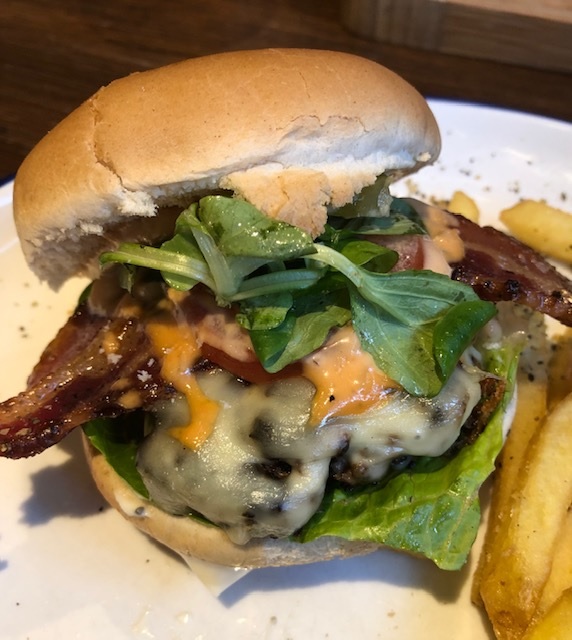 I wondered where the melted Red Leicester cheese was so I lifted the top bun to get a better view and there it was topping the bacon where it was mingling with it’s friend the homemade burger sauce 🙂