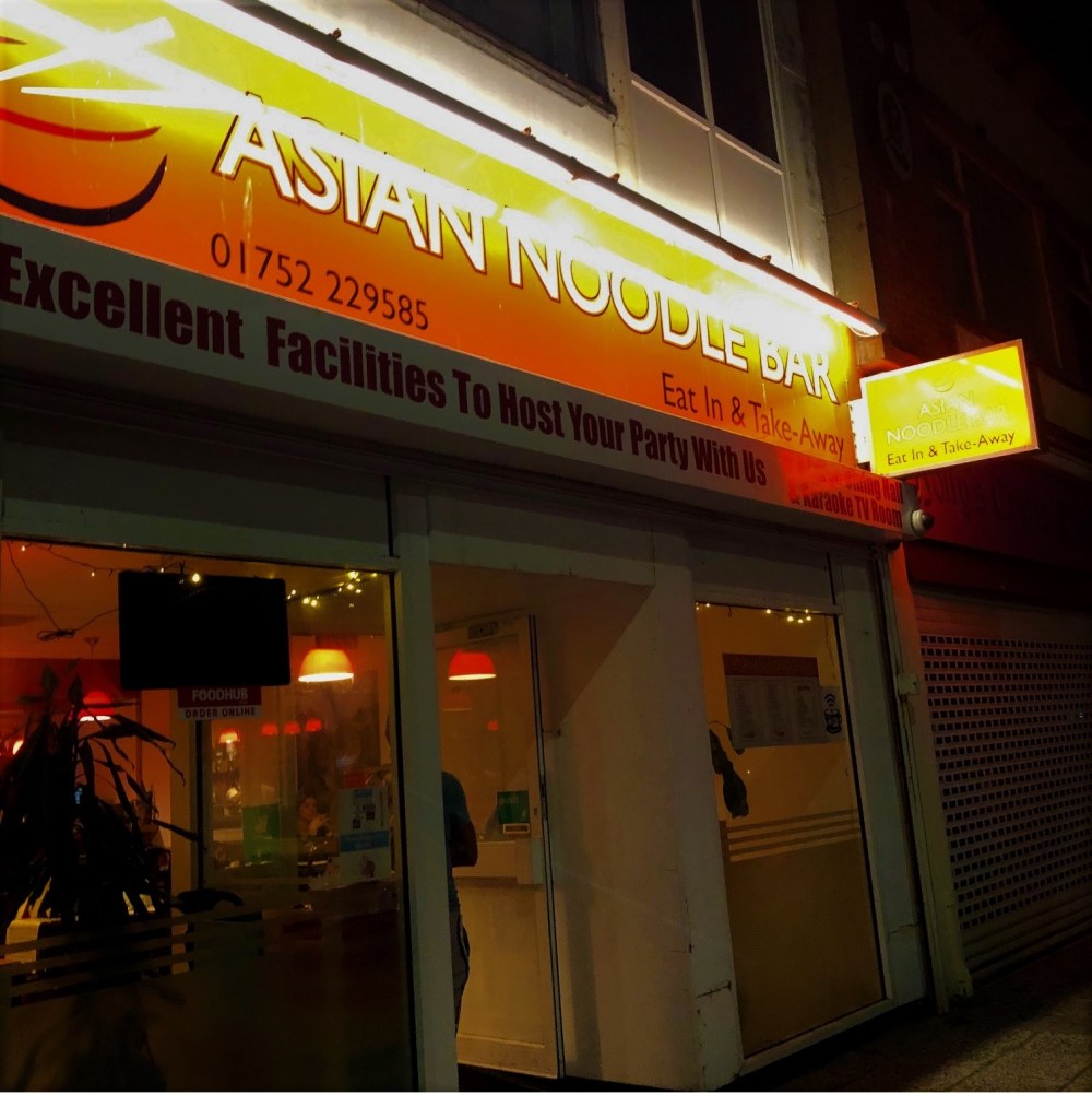 The Asian Noodle bar is located at 112 Cornwall Street in Plymouth, PL1 1NF