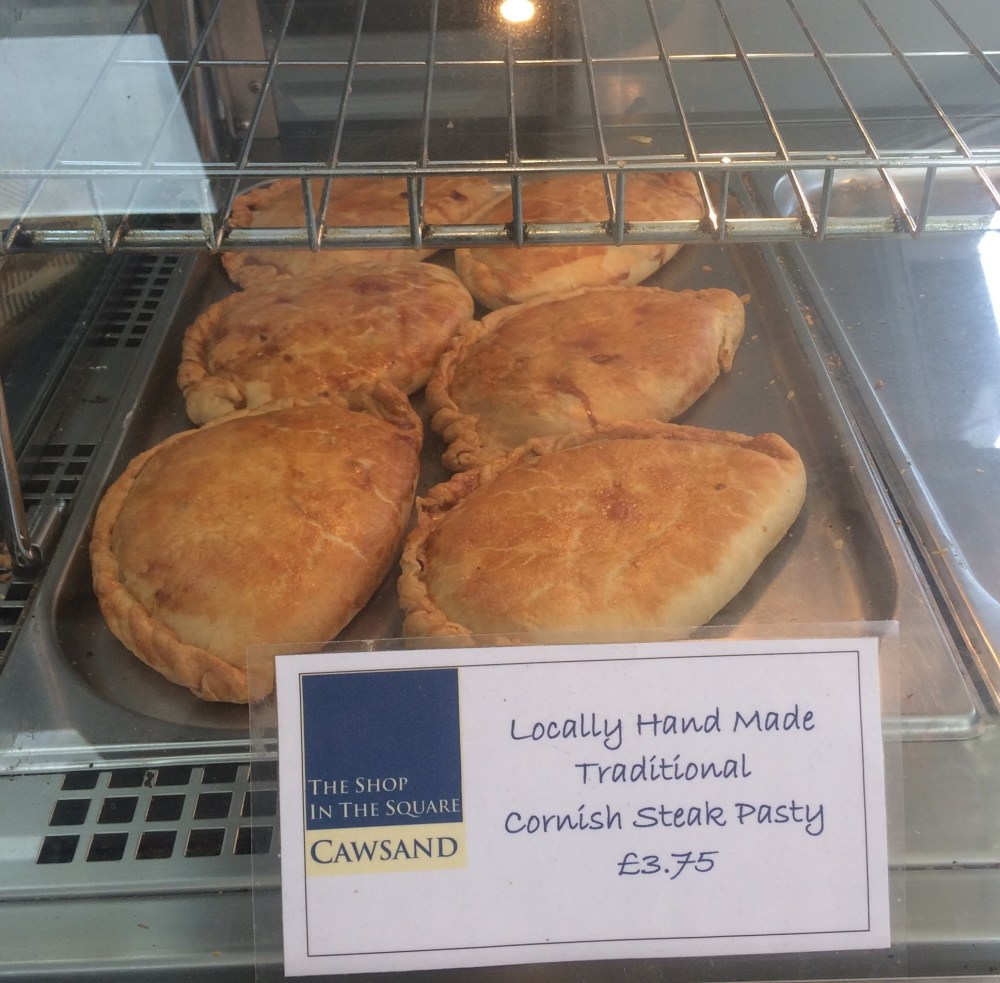 I was happy to read the label on the counter in the Shop In the Square offering a “Locally Hand Made Traditional Cornish Steak Pasty” for £3.75.