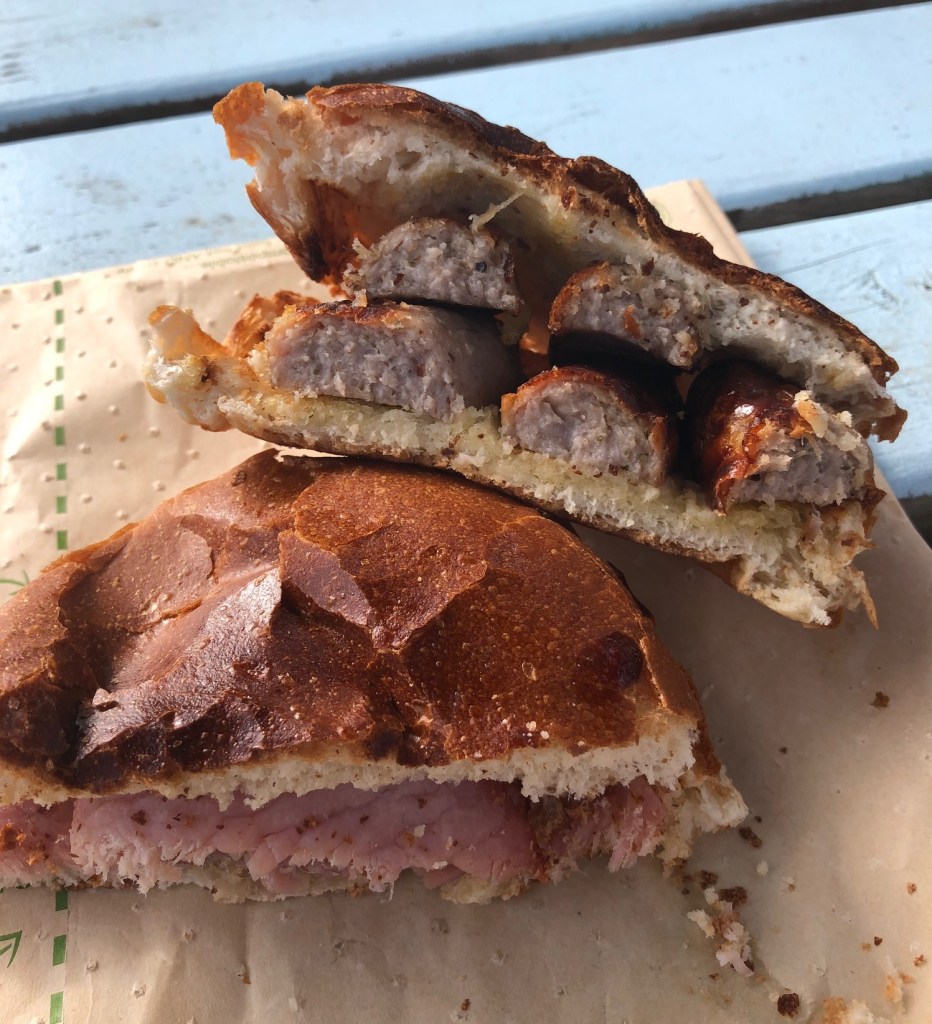 Now I would have happily had the combo but on this occasion they only had enough sausage for one bap so we got one of each and decided to have half of each one to share.