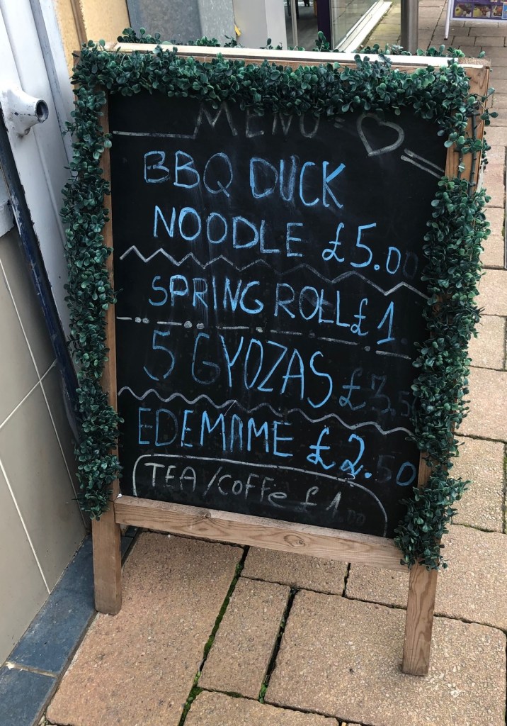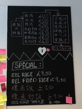While we were ordering I noted the chalkboard inside where they were offering Eel Rice, and Eel fried rice for £9.50 as a special. I would like to come back and try that when we can sit inside again.
