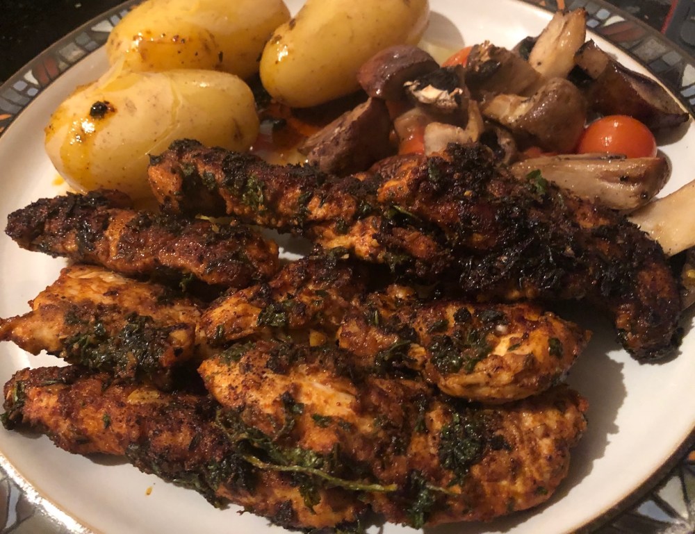 In essence this is a grilled chicken dish, but the flavours from the marinade used made it really tasty. I cooked it on a grill pan, but really it should have been cooked on skewers over a charcoal grill and that is going to be what I am doing now that we are at the start of BBQ season.