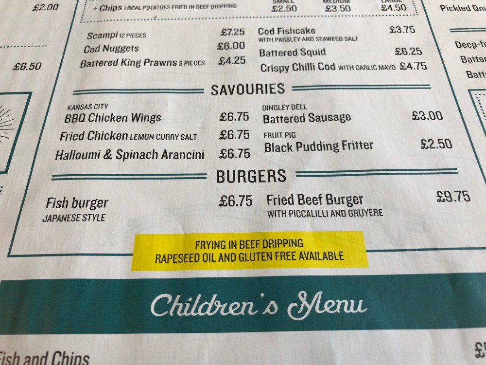 I lit up inside a little when I read that they offered ‘Classic Fish & Chips, Beer Battered & Cooked in Beef Dripping’. I really needed some of that in my life!
