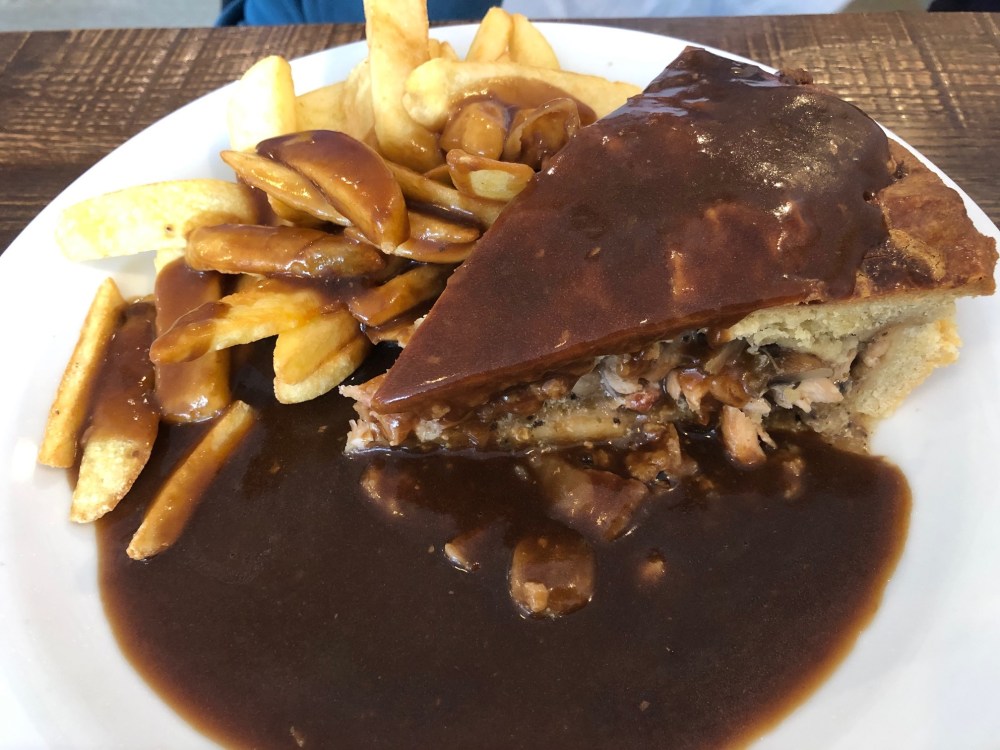 If you like a proper pie with loads of gravy then you will love this Chicken, Bacon, and Mushroom pie at Nelsons! It is a real belly filler with pastry all around (top and bottom) and lots of filling. You get a great big slice cut from an even huger pie, chips and lashings of gravy