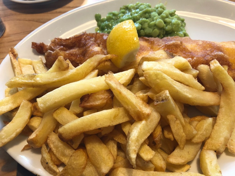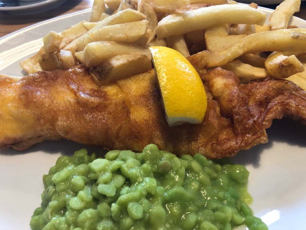 The Large Cod, Chips and Peas was described as “Prime Cod fillet cooked to perfection in our world famous crispy batter” which was a heady claim, ‘perfection’ and ‘world famous’ are not terms to be bandied around lightly 🙂