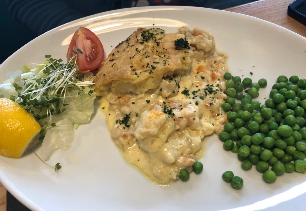 The Homemade Fisherman’s Pie was billed as a “Classic fisherman’s pie served with peas” which seemed a little restrained in description. It was a really very good pie, the creamy mix beneath the mash potato topping was rather delightful, rich and decadent and full of fish.