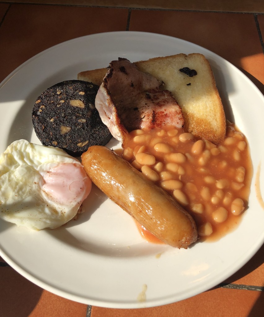 The Small breakfast was just £4 and was made up of 1 Egg, 1 Bacon, 1 Sausage, Beans or Tin Toms and Slice of Toast which sounded ok as a starting template, we added a slice of black pudding and a slice of fried bread for another 50p for each item and it was looking good for £5 🙂