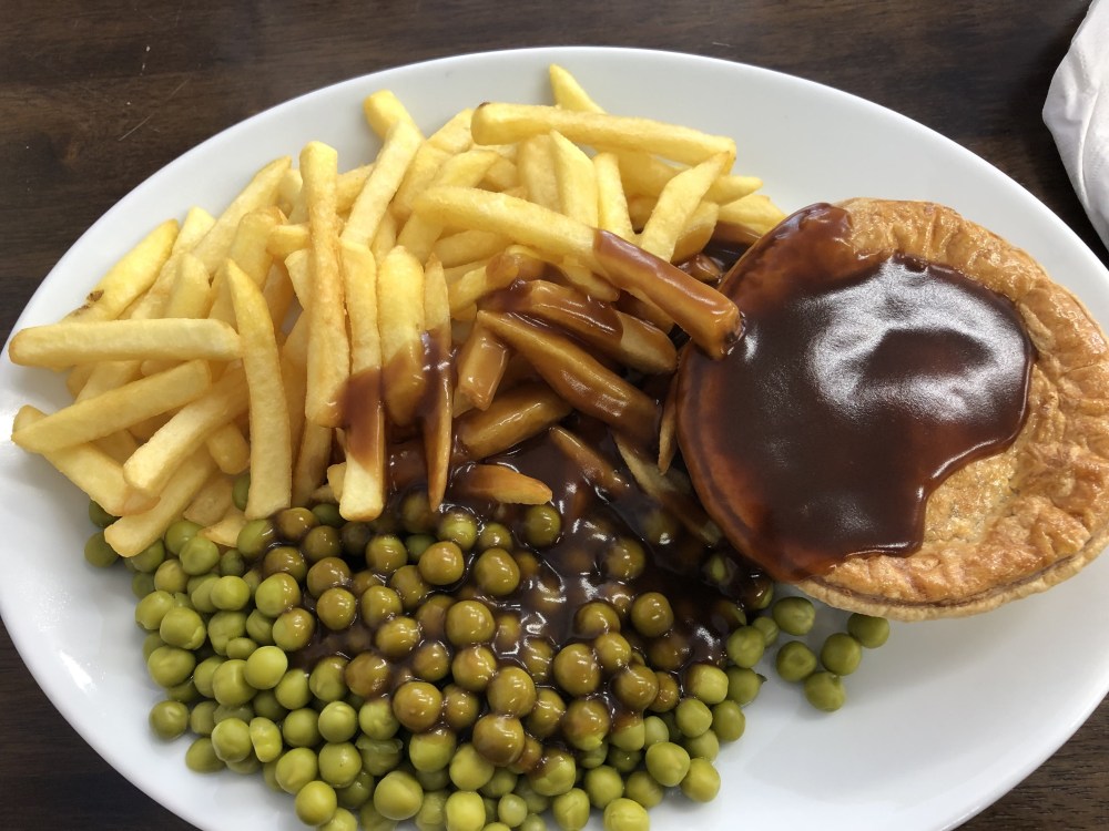 While I really liked the pie and some of the chips, my ‘garden’ peas were just those sad ones from a tin so not as exciting as the mushy peas on the other plate. I think I would have preferred some frozen peas instead