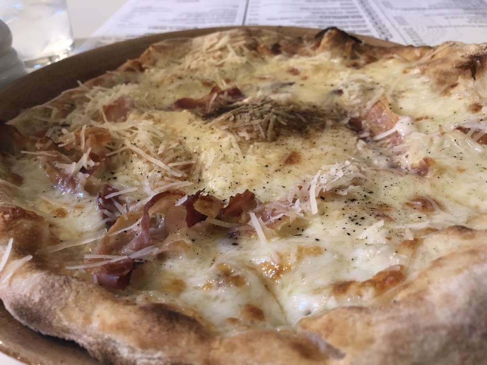 This was essentially a white pizza without tomato and was described on the menu as thus “Pancetta, Pepper and Parmesan bring this pizza to life“