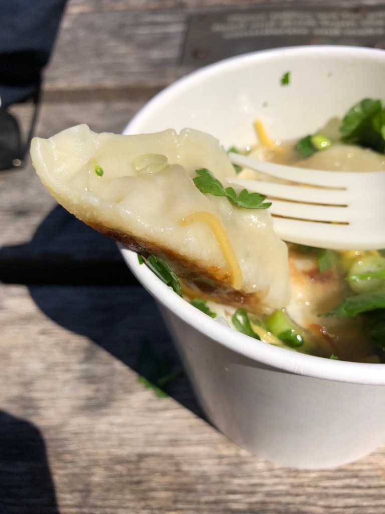 I just could not resist any combination that included both dumplings AND ramen. The bowl had at least 5 or 6 pot-sticker style dumplings floating around in the broth each with a perfect casing and tasty mince chicken filling.