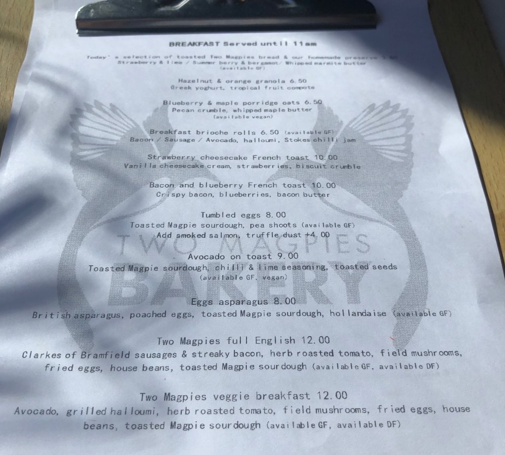 The Two Magpies Bakery on Timber Hill in Norwich was a slightly more upscale spot to grab my breakfast in comparison to some of the less salubrious joints that I sometimes frequent.