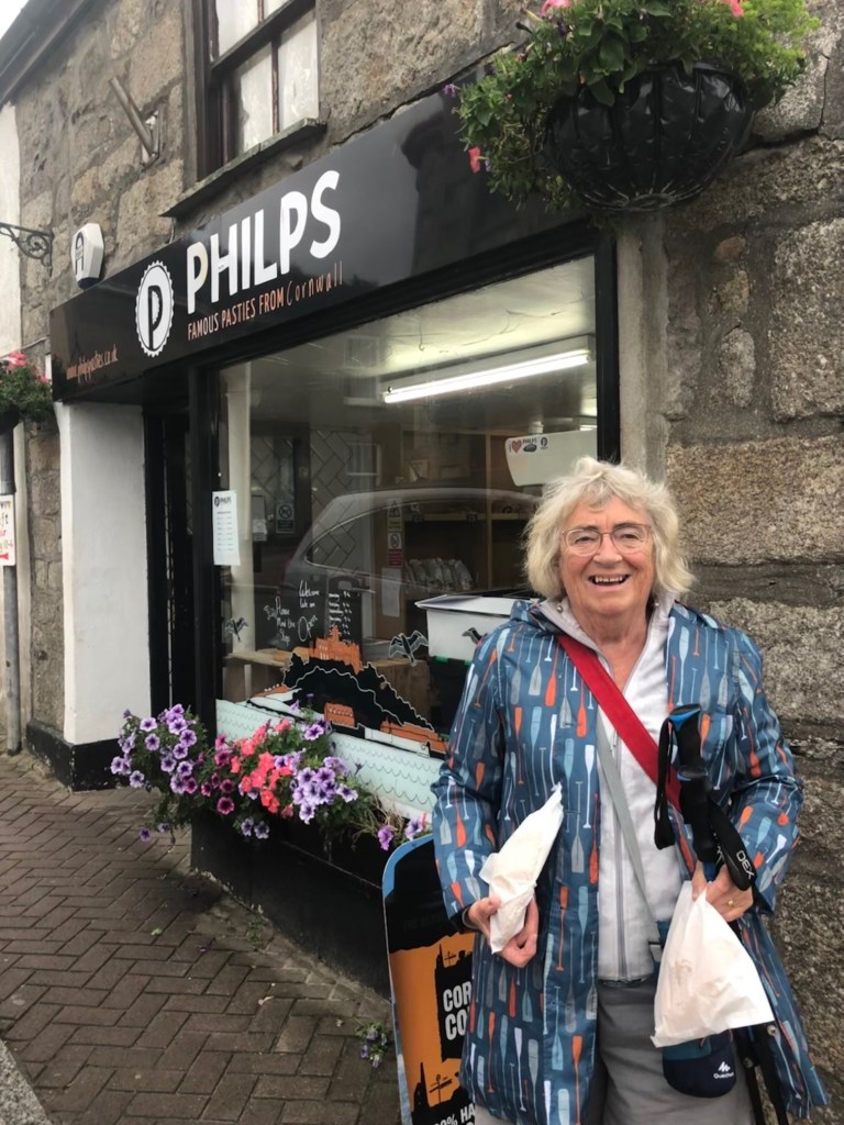 Mission accomplished two hot pasties purchased fresh out of the oven. I am sure that by the time we have walked over to the island they will have cooled down ready to eat.