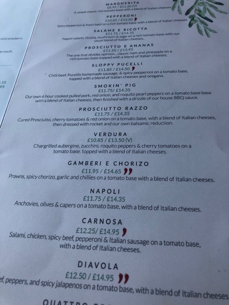 On another day I may well have chosen the SLOPPY PUCELLI topped with Chilli beef, Pucellis homemade sausage & spicy pepperoni on a tomato base topped with a blend of Italian cheeses and oregano.