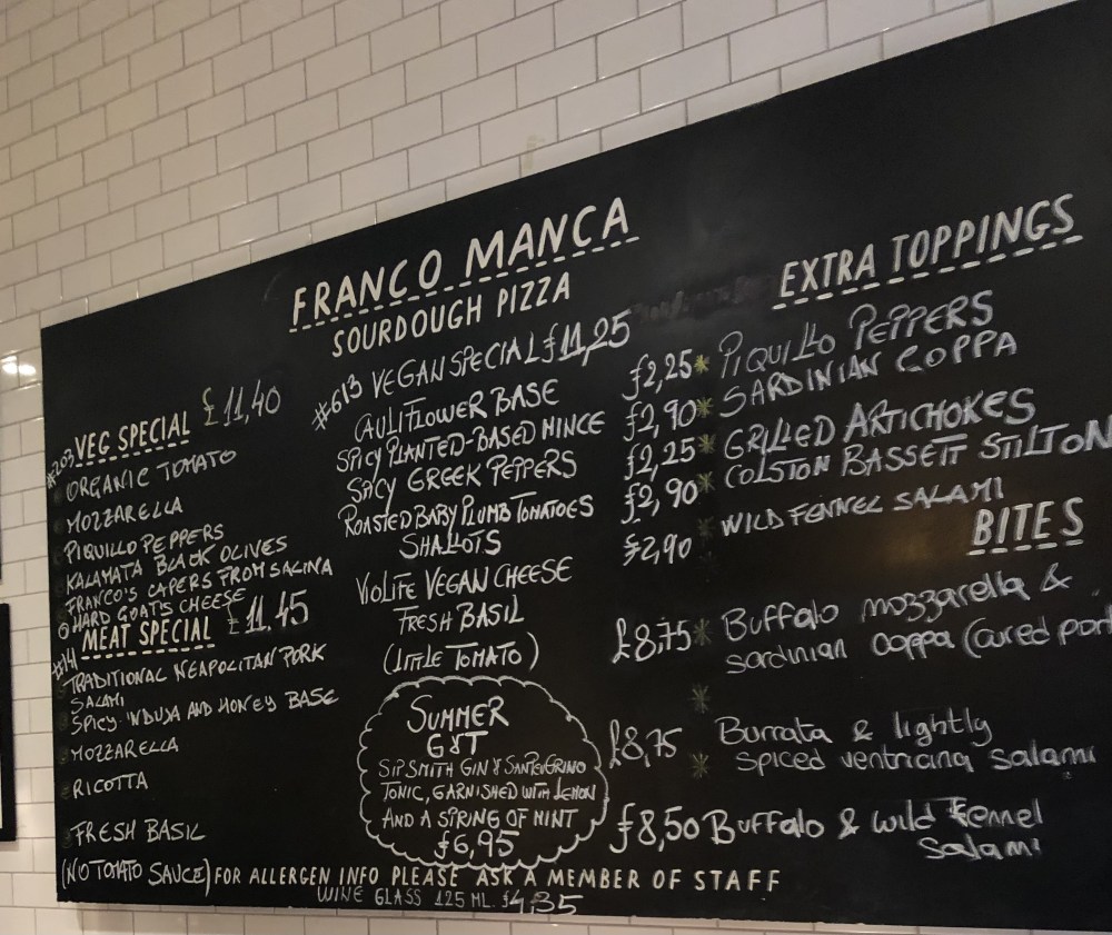 Price wise I have to say that Franco Manca was good value. The fancier pizza are around the £11-12 mark but you can get a simple ‘Organic tomato, garlic, basil & oregano’ one for just £6.50 which sounds a bargain.