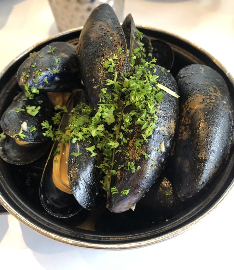 The second bowl of mussels we chose was the much more familiar MARINERE described as being cooked with “Sautéed Onions, Garlic, White Wine, Chopped Parsley finished with a touch of cream”