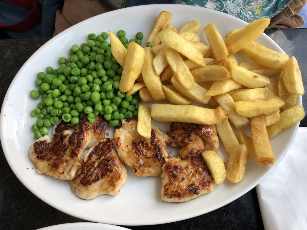 The Chicken Breast came with chips and peas and that simple description matched what was served on the plate. There were a lot of pieces of fried chicken breast alongside a pile of frozen chips and a pile of frozen peas but in fairness a decent portion for £8.50