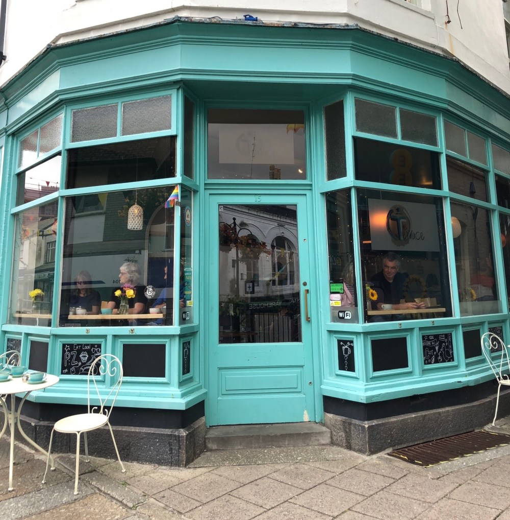The Terrace in Penzance is a rather nice, quirky and bright cafe serving excellent sandwiches, cakes, coffee and more on Market Jew Street right in the heart of the action.