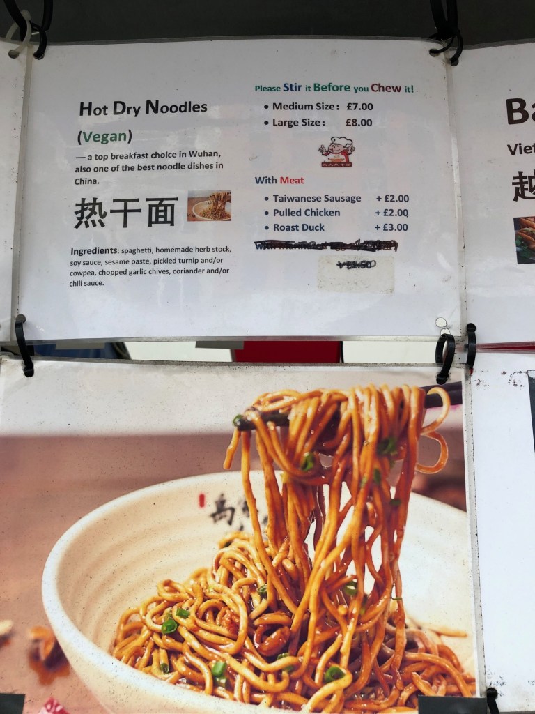 I had been quite excited when I had seen a photo of a chalk board offering Hot Dry Noodles Wuhan style on t’internet (règānmiàn 热干面 ) as this particular dish is my all time favourite noodle dish that I learned to love from my time at the Chinese Academy in Wuhan back in the 1990’s, so I was hoping to find a bowlful today