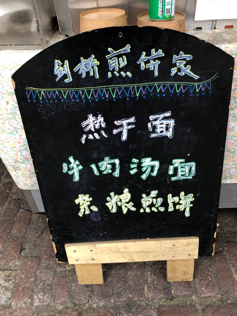 Now in the olden days that would have been that but these days I have a handy app on my phone which ‘sort of translates’ so I used it to read that this chalkboard read “Cambridge Pancake House, Hot Dry Noodles, Beef Noodle Soup.