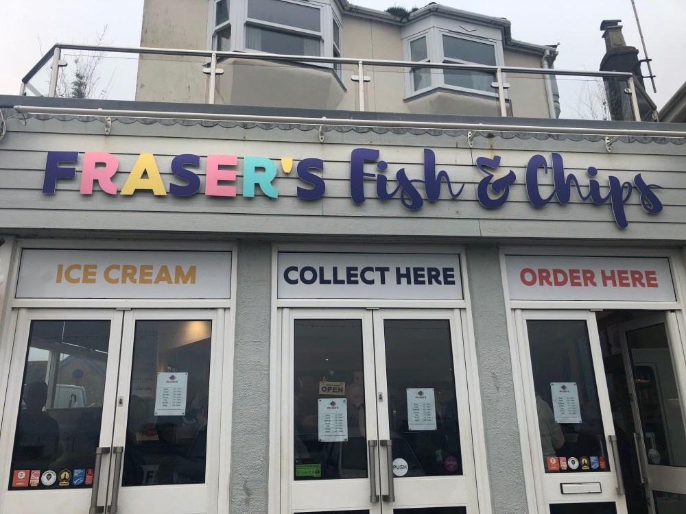 Fraser’s Fish and Chips are located on the Western Promenade in Penzance in Cornwall. They seemed to be nearer to Newlyn than the middle of Penzance, but what do I know it all seems to merge into one I do know it was a long walk up and down the hill!