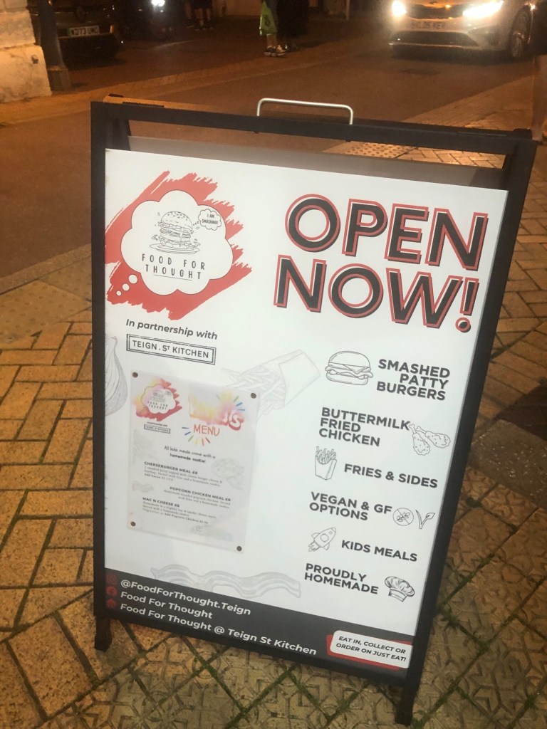 Food For Thought (F4T) in partnership with Teign St Kitchen can been found operating out of the kitchen of Molloys who are at 1 Teign St, Teignmouth TQ14 8EA on a regular basis.