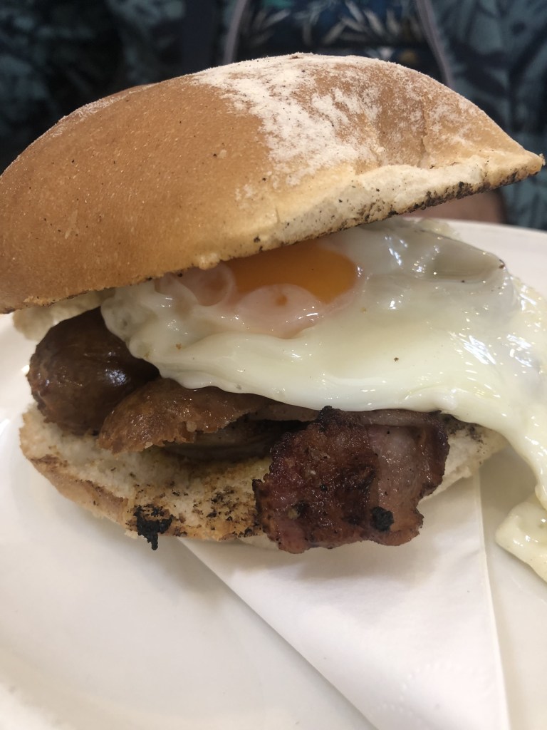 Packed out with a couple of sausages, slices of bacon and a well cooked fried egg , this is one hearty sandwich which will keep you going for a while and give you plenty of energy for a walk along the promenade