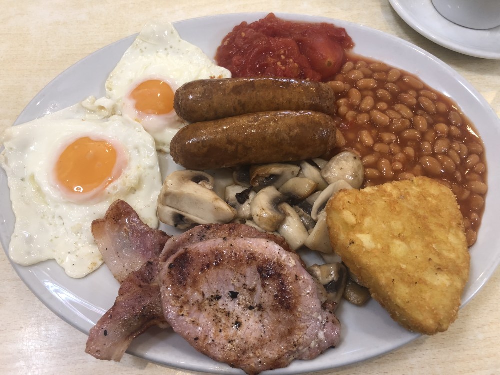 I chose somewhat lightly in comparison to some opting for the REGULAR breakfast which comprised of “2 Bacon, 2 Sausages, 2 Eggs, 1 Hash Browns, Beans, Tomatoes, Mushrooms & 1 slice of toast” for £8.25