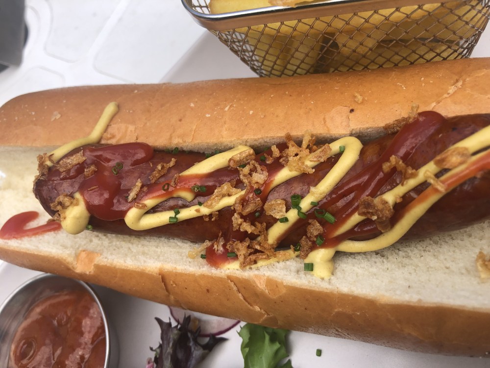 The menu was not as extensive as we recalled being restricted now to a selection of Austrian Sausages all served in a Bun topped with with Austrian Mustard, Ketchup, and Crispy Fried Onions for £11.95 or a plate of Bratwurst Loaded Fries for ‘gulp’ £12.50!