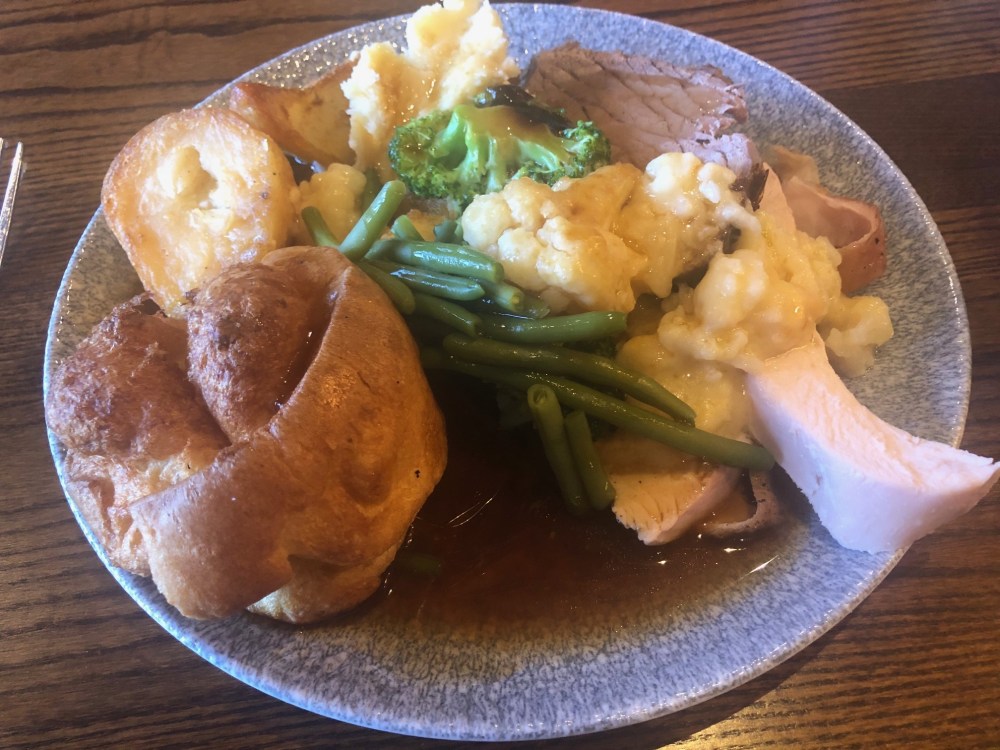 The Yorkshire pudding wasn’t bad, it had risen well and had a hole big enough to fill up with gravy. The roast spuds were big too, and I liked that they were fairly well crisped up