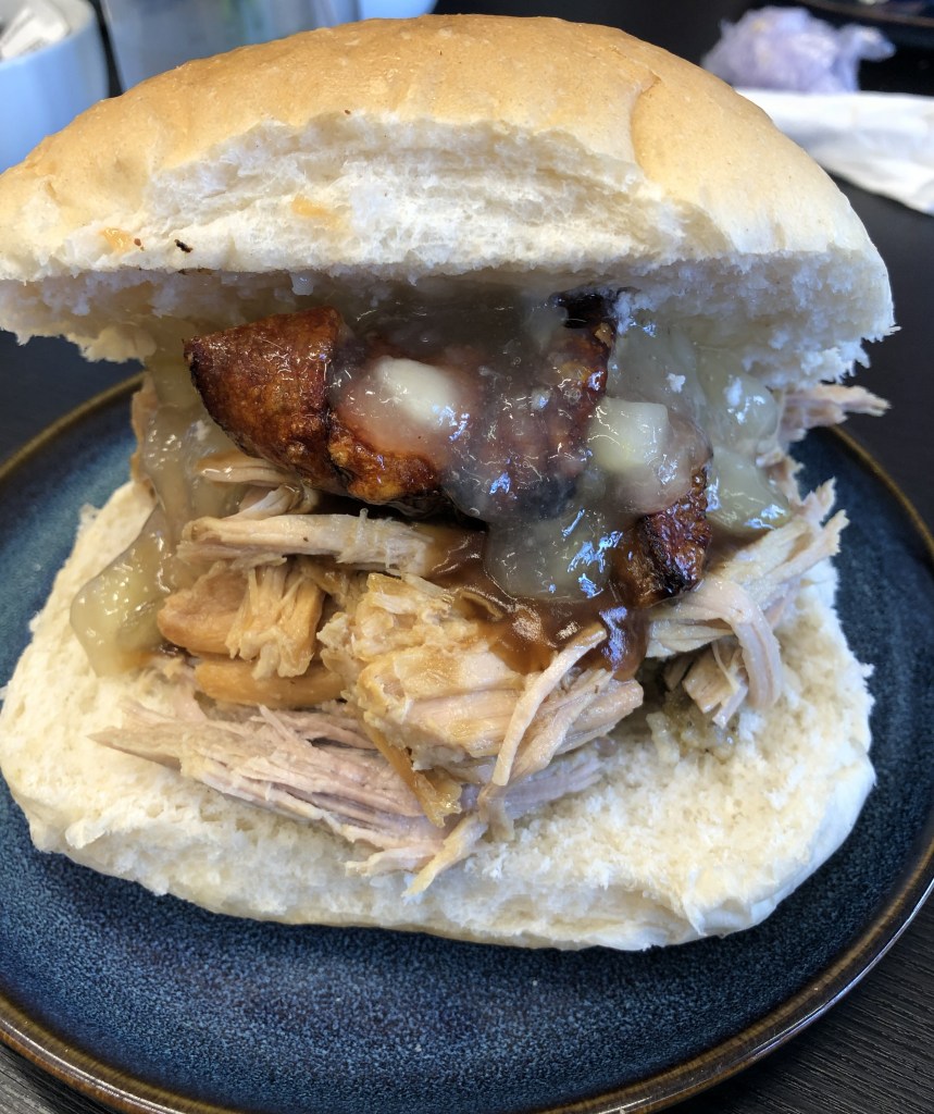 The Hog Roast Bap or Roast Pork cob was surprisingly good. It was filled with plenty of juicy chunks of hog roasted pork, some tasty stuffing, a big scoop of apple sauce, a spoonful of thick gravy and some of the best crackling I have crunched upon for some time