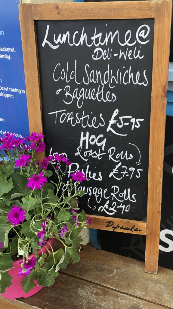 They are situated close to the lifeboat station by the harbour and seem to be well frequented by locals and visitors which is always a good thing, many local workers turning up to collect their regular lunch while we were eating.