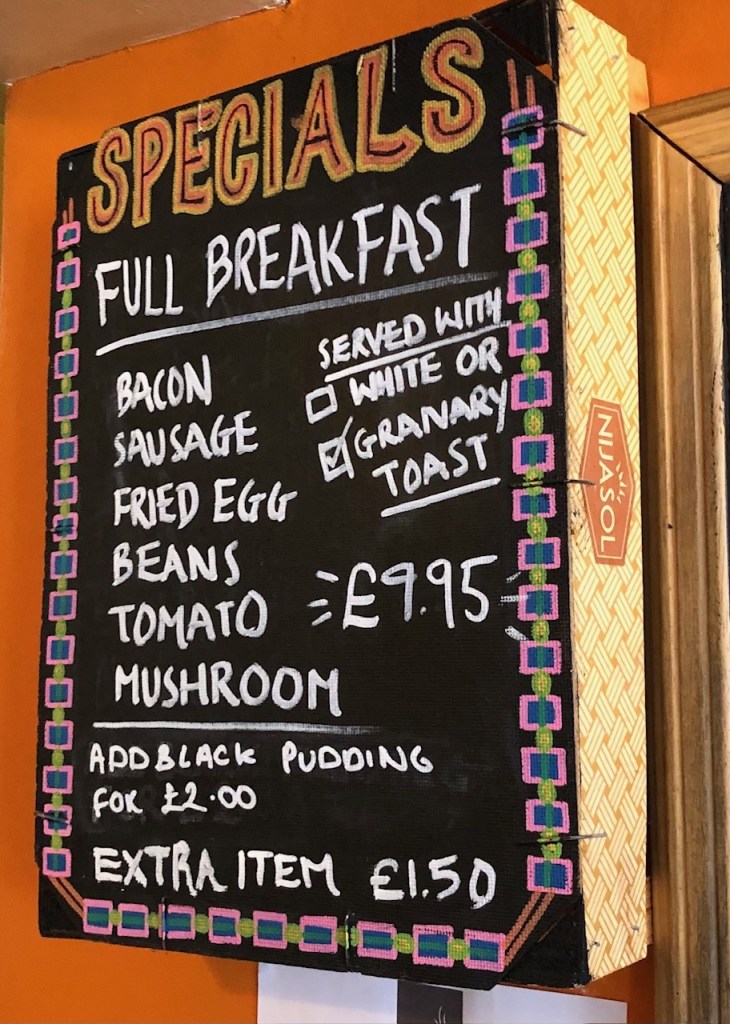 SPECIALS BOARD FEATURING A FULL BREAKFAST