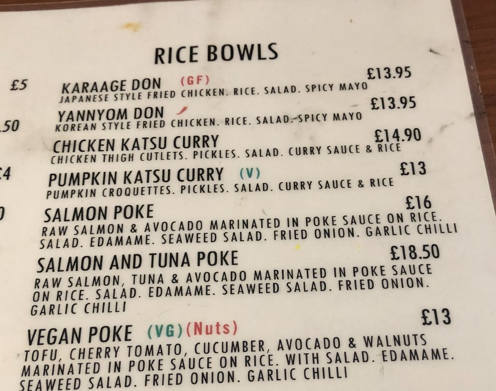 From the rice bowl section of the menu we picked out the KARAAGE DON, which was very simply described as ‘Japanese style fried chicken, rice salad, spicy Mayo’ for £13.95