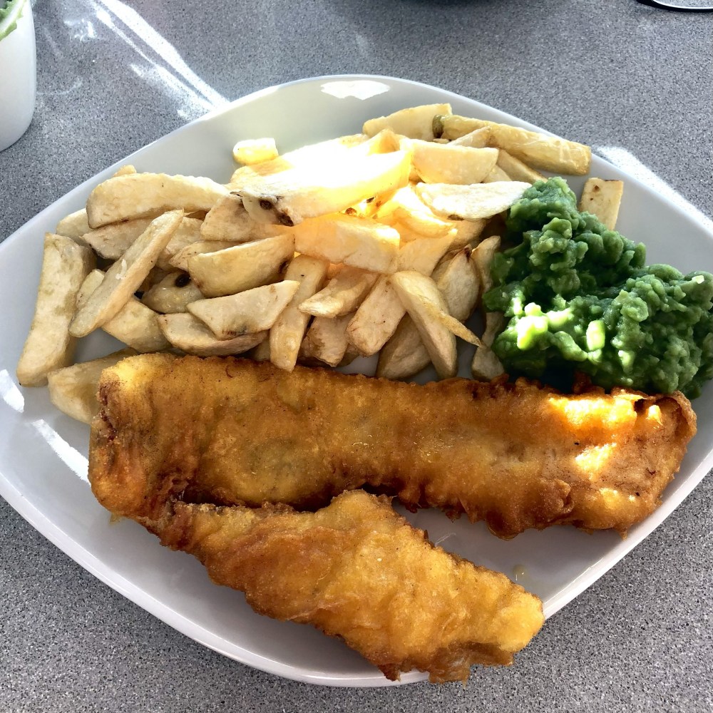 HADDOCK AND CHIPS WITH MUSHY PEAS