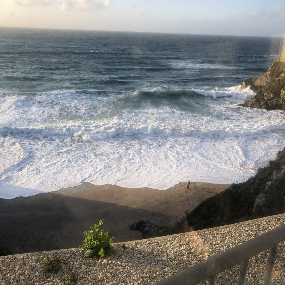 The reality was almost as good with the late afternoon sun coming through the window keeping us warm as we looked down at the waves crashing gently onto the beach