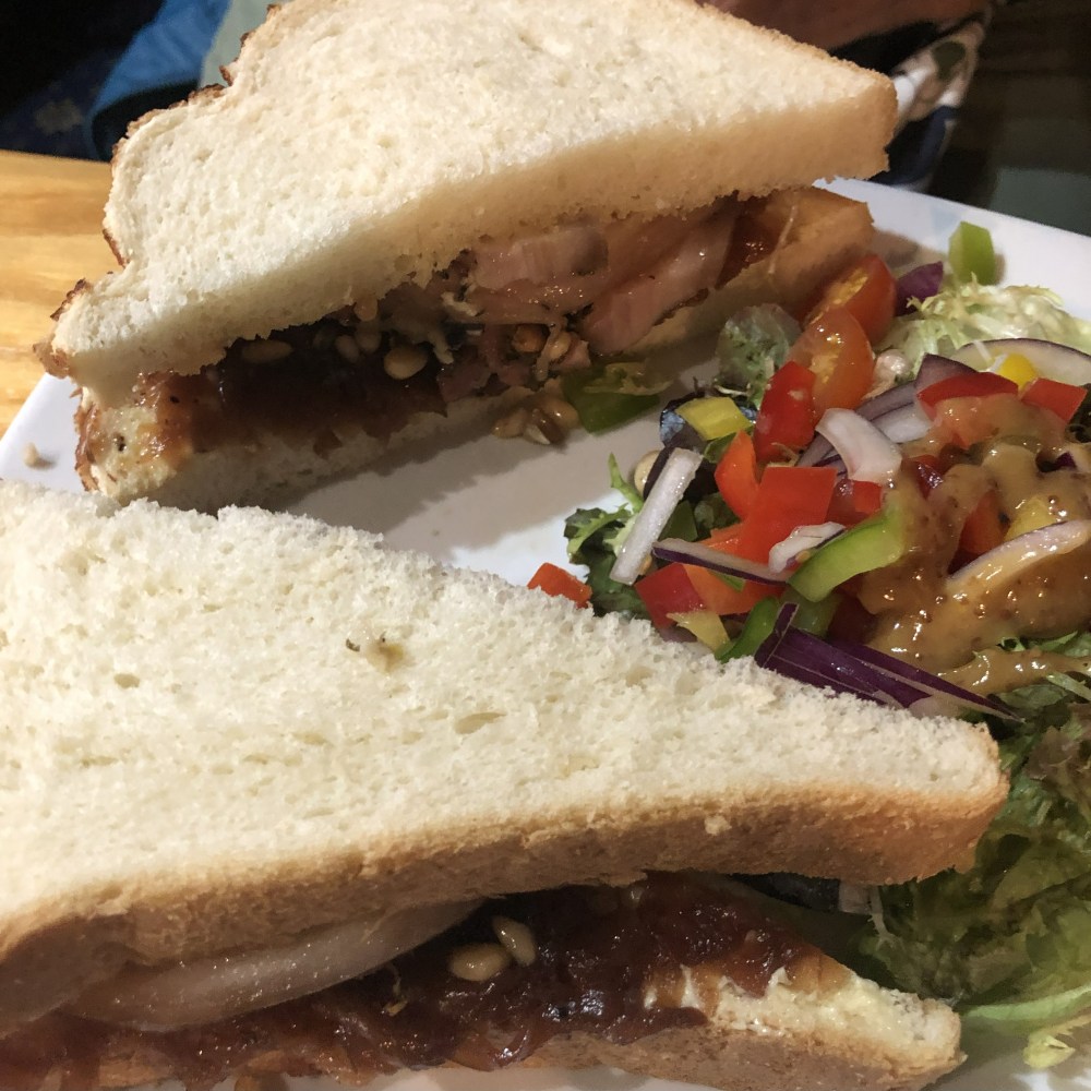 This was HUGE! Doorstop slices of bread packed out with generous portion of unctuous sliced Porchetta. Pork Belly joy to the max. Onion marmalade added some sweetness and the accompanying side salad (which was unnecessary) added the healthy bit, freshness and crunch.