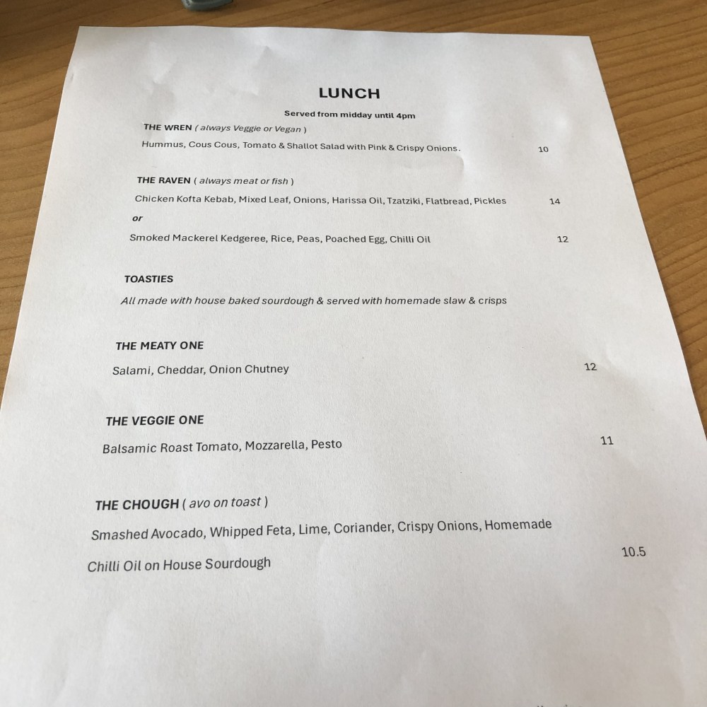 The Wren & Raven up at the top of Market Street is a great addition to the cafe scene in Penzance. Self styled on their site as being ‘An independent coffee roastery, artisan bakery, art gallery, and music venue based in Penzance, rooted in creativity and community‘ it was certainly a quite bustling spot when we visited for lunch