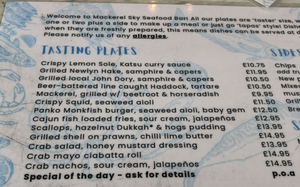 You can’t come to Newlyn without making at least one visit to the excellent Mackerel Sky Seafood bar (or in our case twice!)