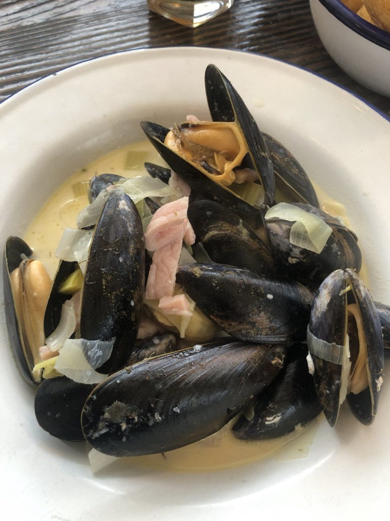 Next up were the MUSSELS off the specials board with WHITE WINE, CREAM, LEEKS and BACON for £15.